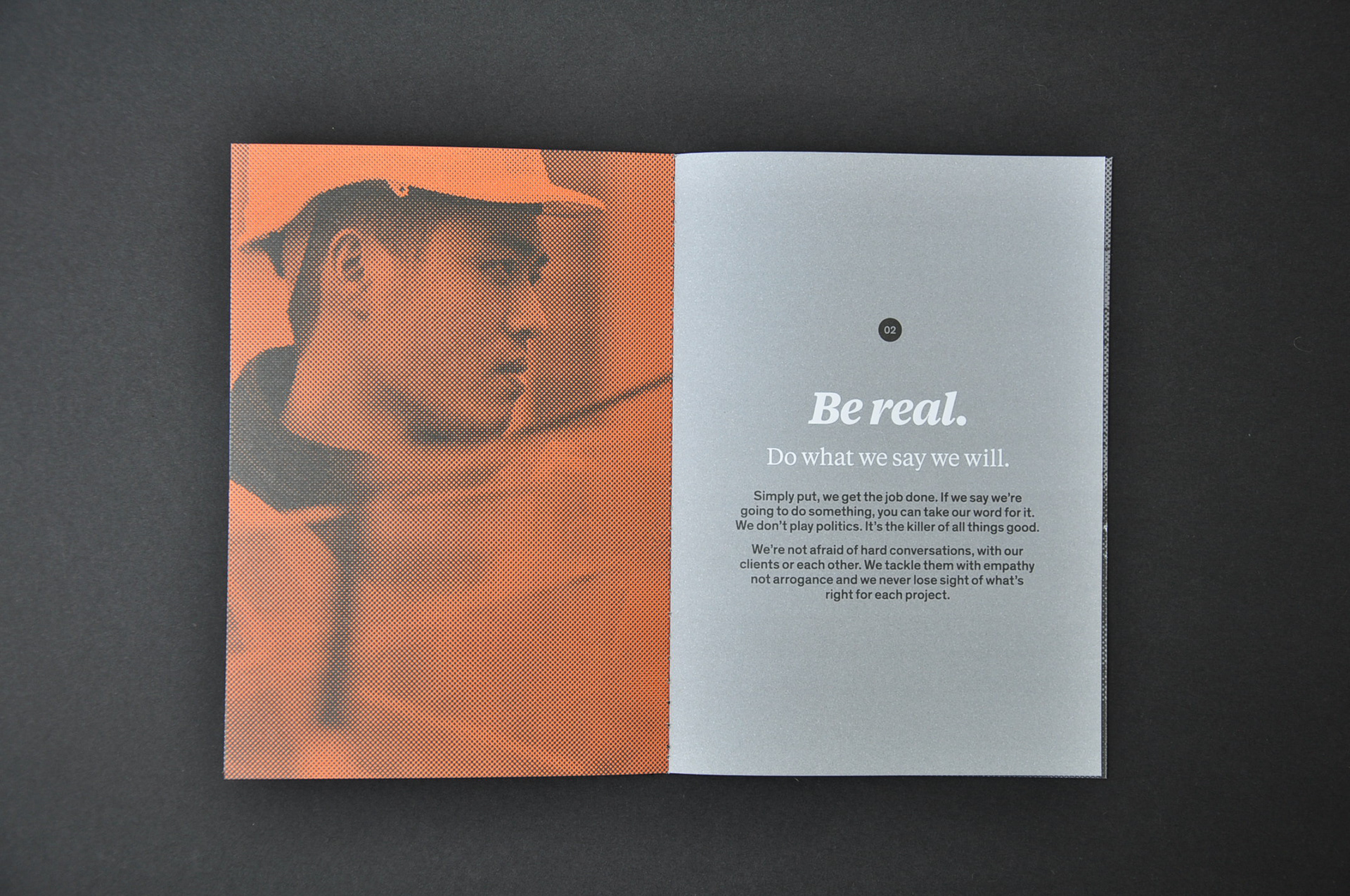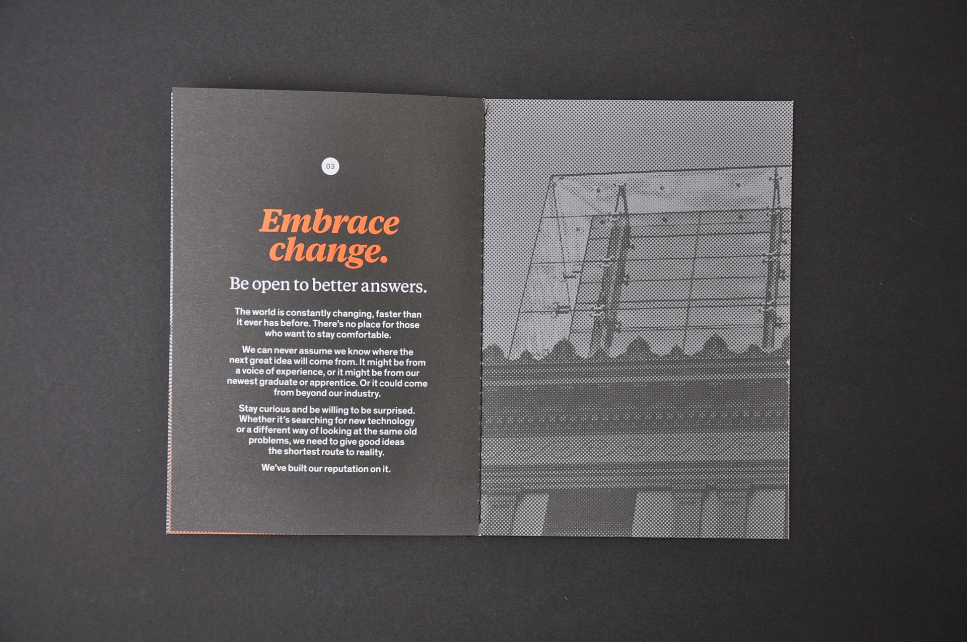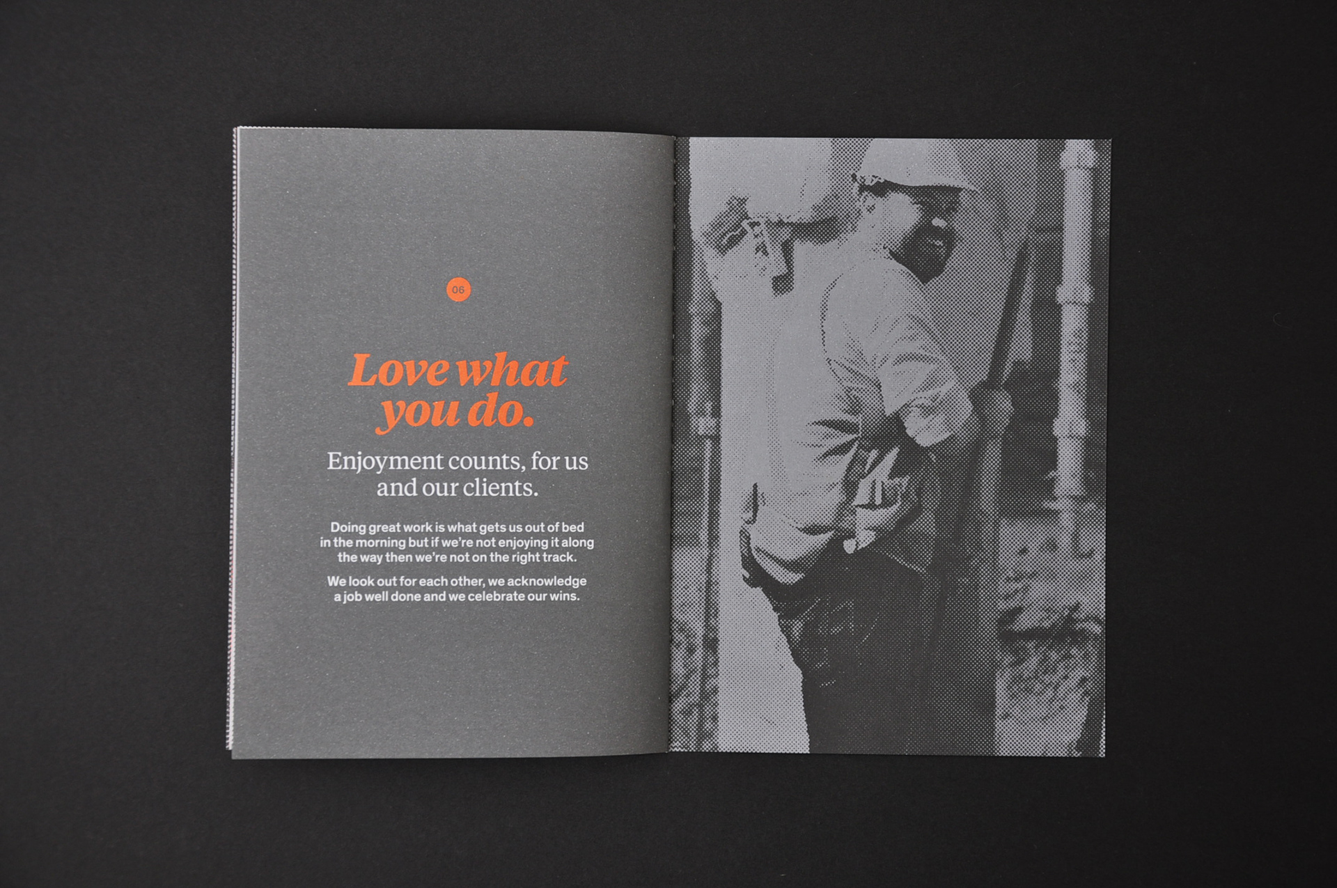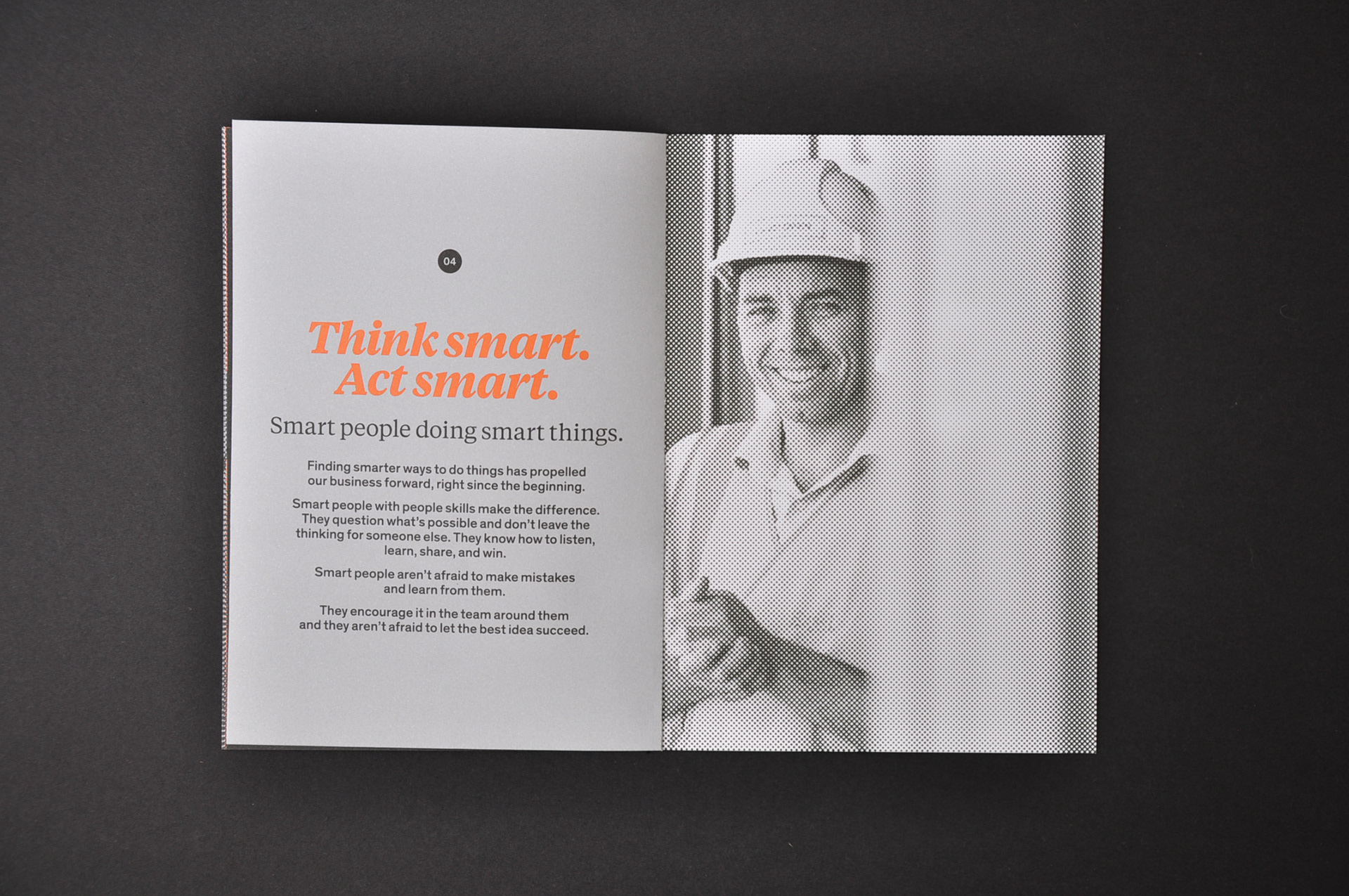 Working with the brand guidelines, a 'Built Worthy' graphic device was suggested for greater consistency across their communications and to help build recognition, and a gritty ‘hard-working’ imagery style was developed that would help differentiate from the main identity.